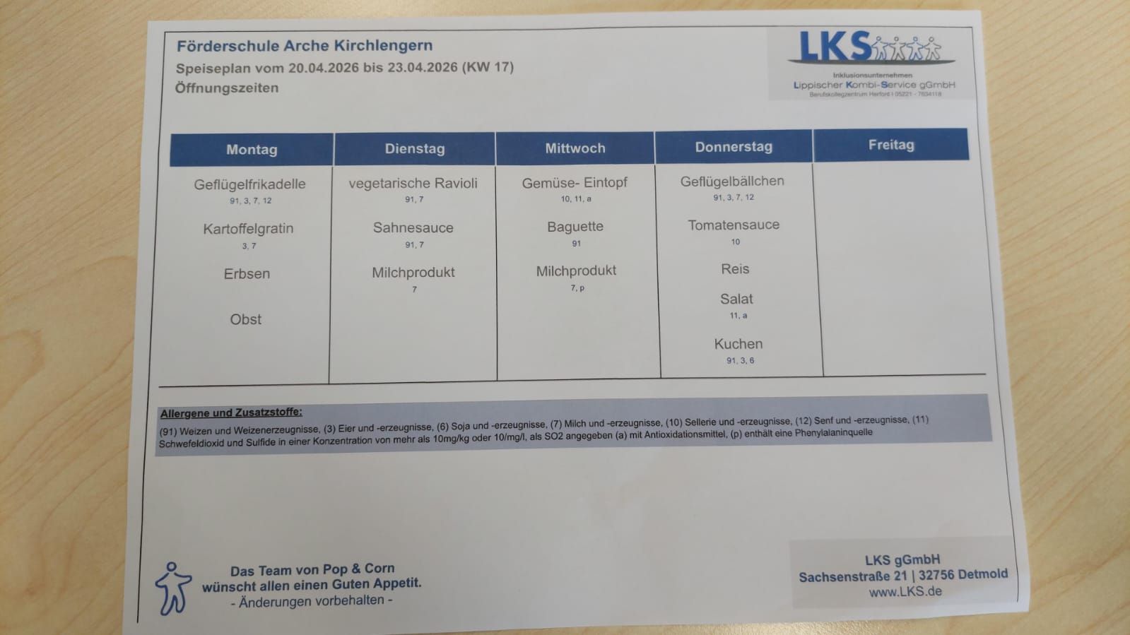Arche2026-04-17T09:21:34+02:00Mittagessen vom 20.04.-24.04.2026